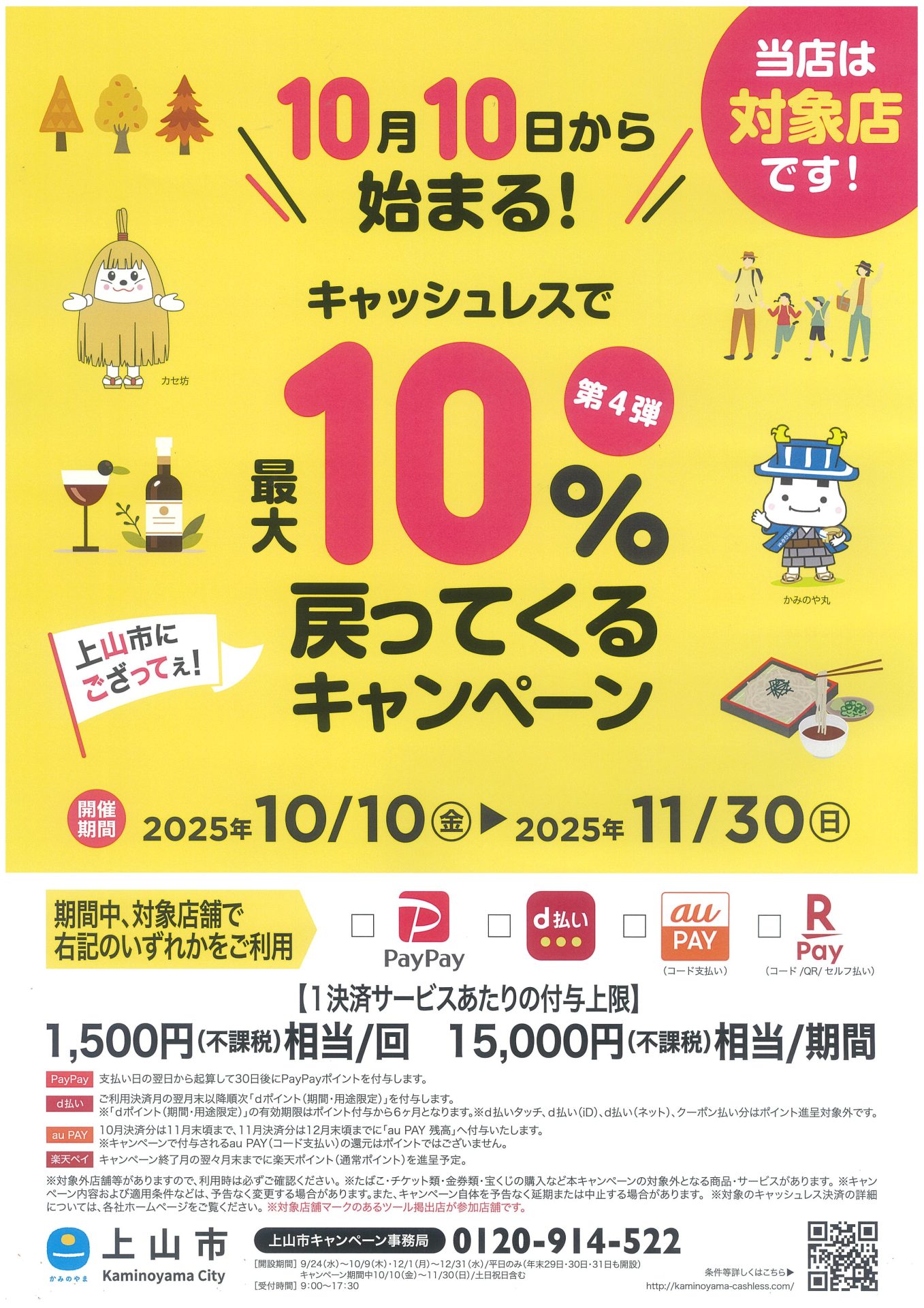 上山市にござってぇ!キャッシュレスで最大10%戻ってくるキャンペーン〈第4弾〉